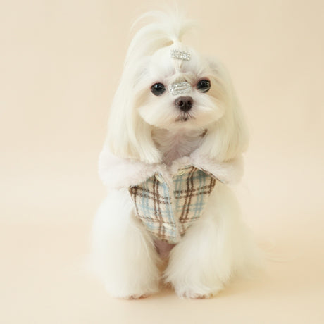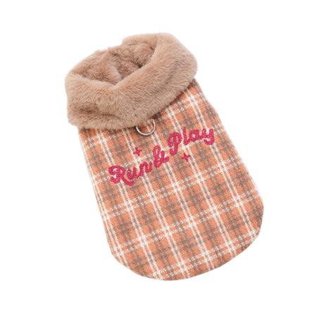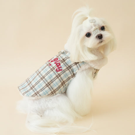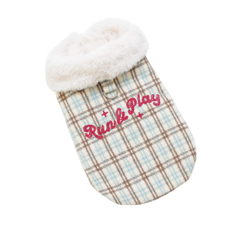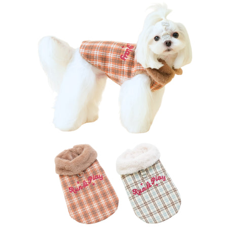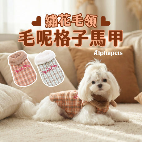 PETTRIP 繡花毛領毛呢格子馬甲
