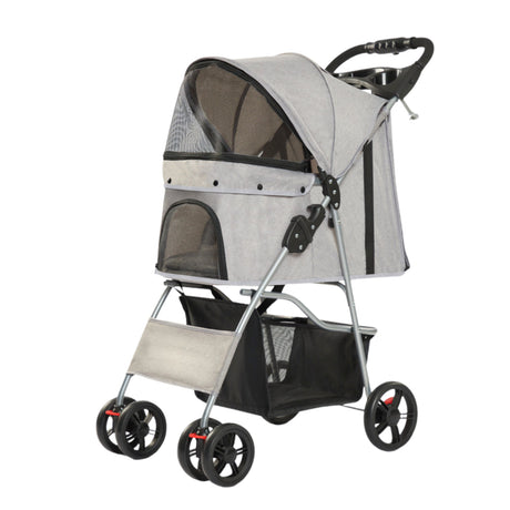四輪單手收車寵物推車 | 15kg承重 | 灰色