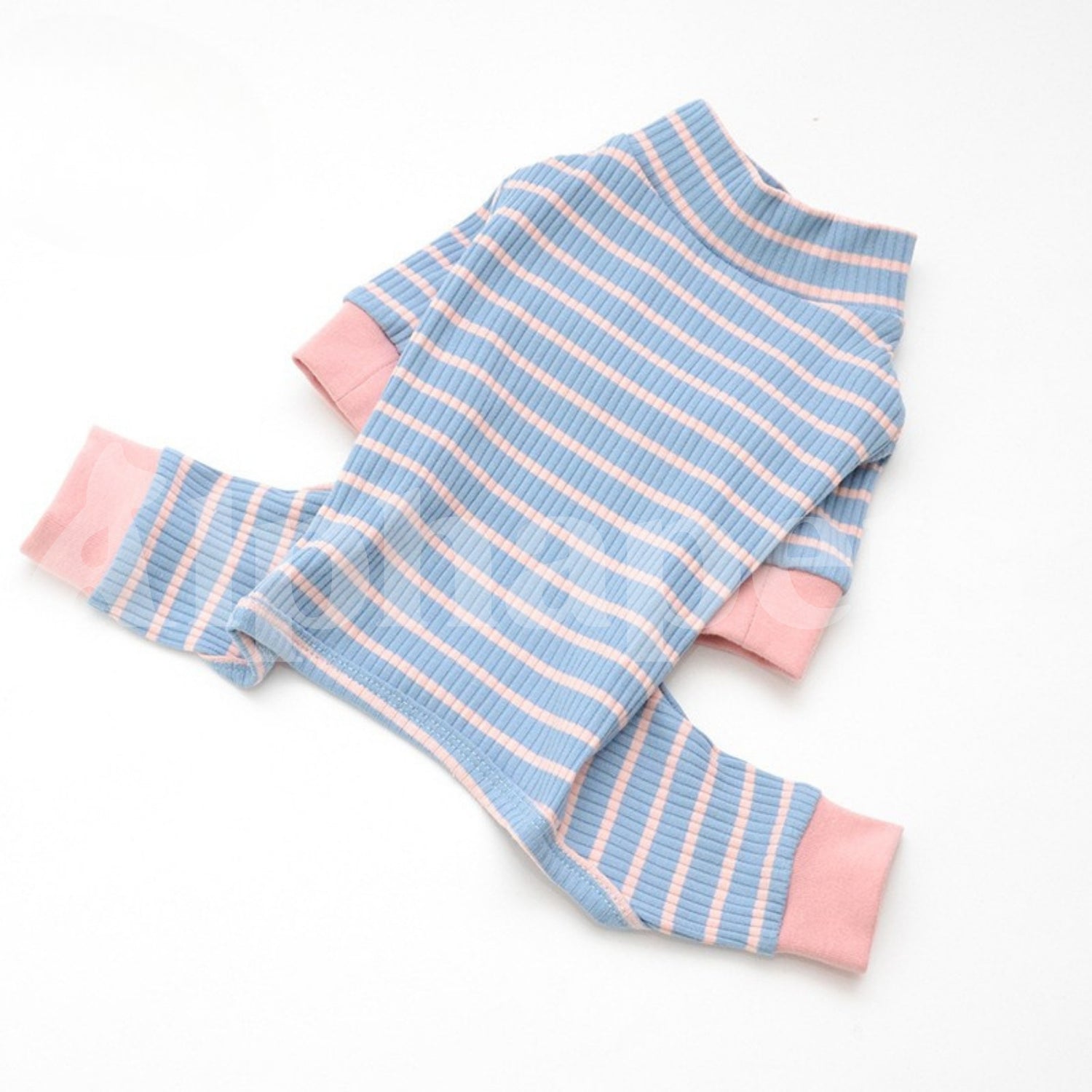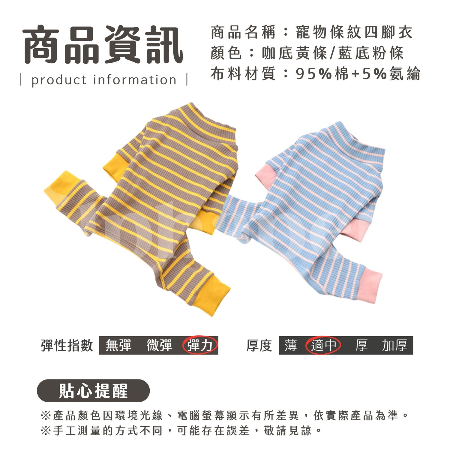 跟你分享一個我最近的超可愛新發現——這件「寵物條紋四腳衣」!是不是光看那個藍底粉條的配色就覺得心情都柔和起來啦?它是專為小型毛孩打造的,有一種舒服的童趣感,穿上後根本就是行走的棉花糖啊💗