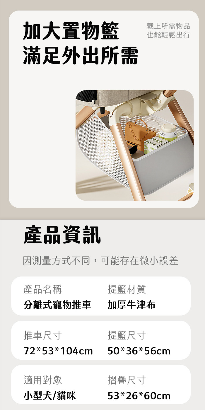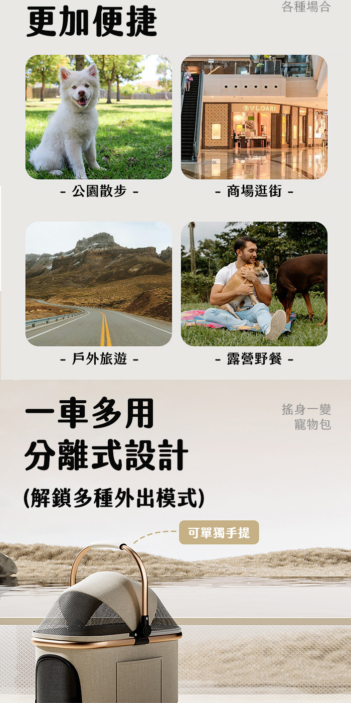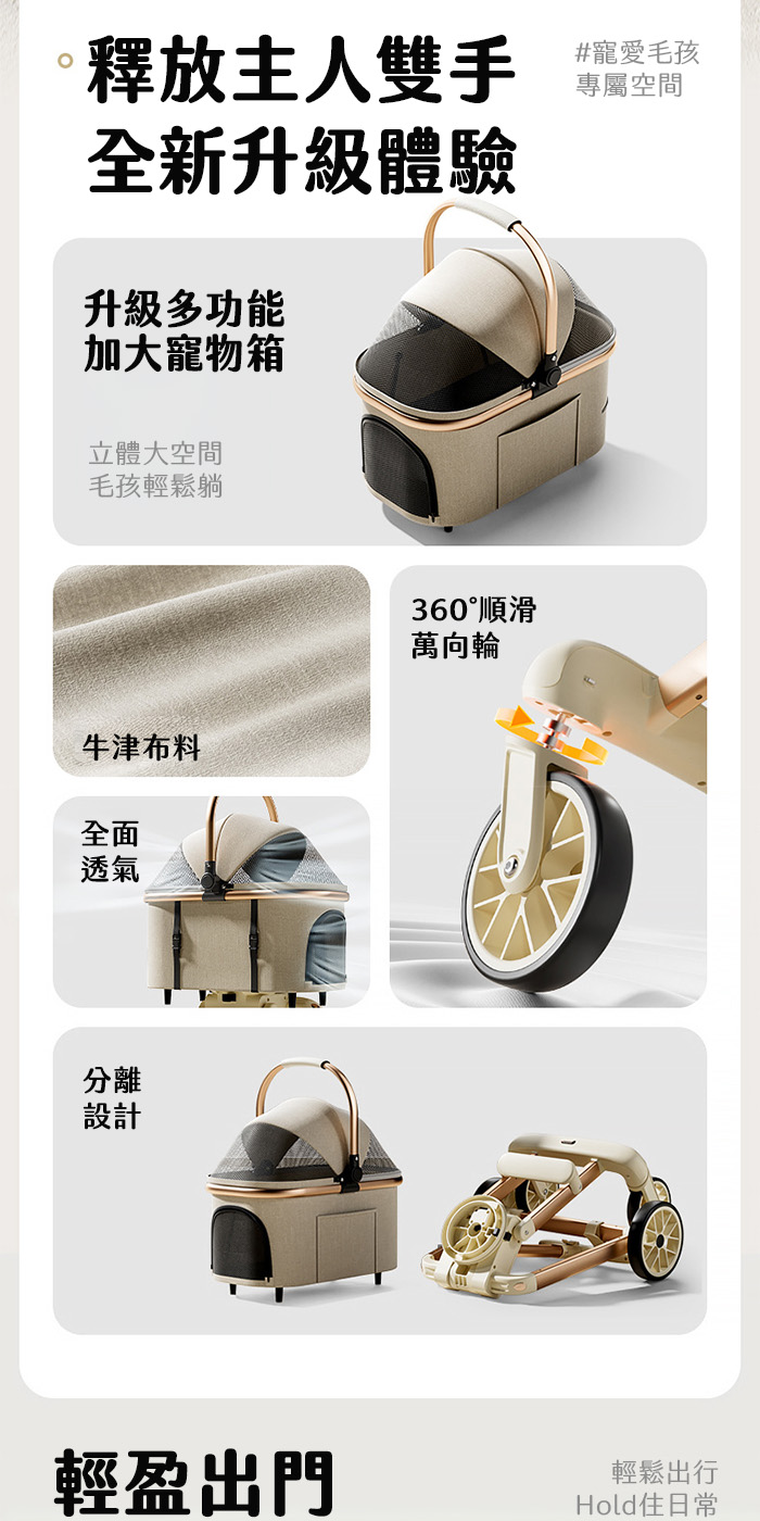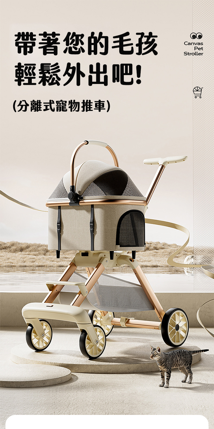 分離式寵物推車 - 卡其色 商品缺貨中,當有庫存時會盡速為您出貨