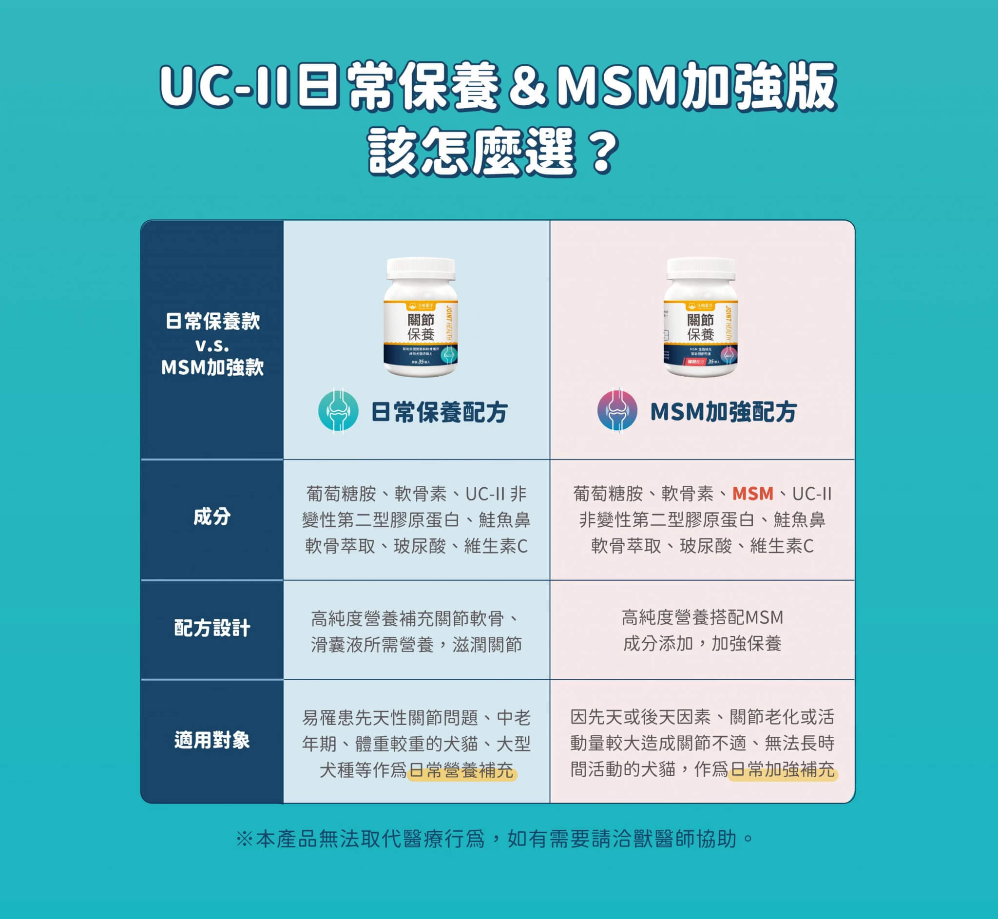 關節問題較嚴重的犬貓推薦「MSM 加強配方」