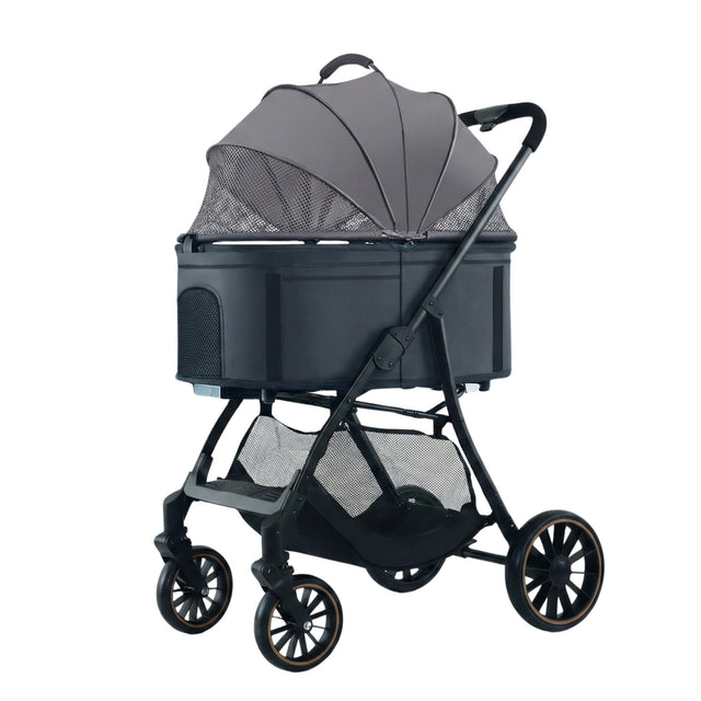 - 雙減震系統: 前輪內置減震彈簧,搭配耐磨 EVA 輪胎,能有效過濾路面顛簸,讓毛孩乘坐更舒適。