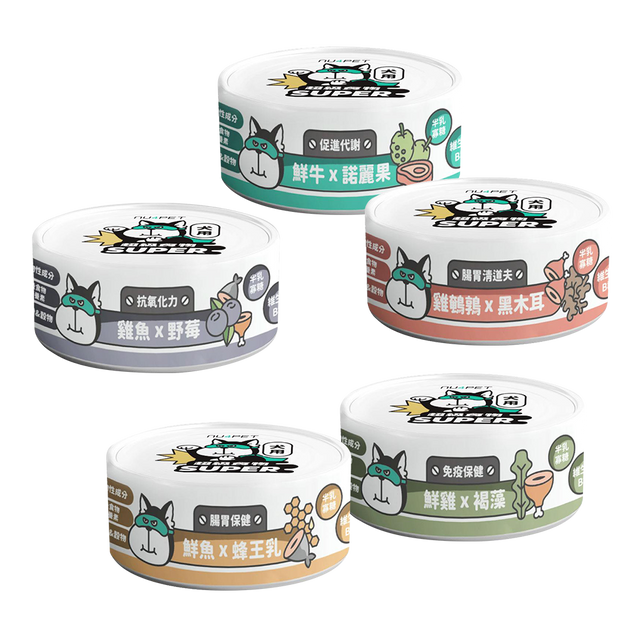 最近發現了一個超貼心的寵物新食物系列——「陪心SUPER小白罐」!真的太感動了,所以忍不住想跟你分享~這是一款專為毛孩設計的全肉主食罐,每一罐都是以新鮮雞肉、魚肉為主體,然後搭配不同的超級食物組合,像是蜂王乳、黑木耳、野莓、諾麗果、褐藻等,完全可以依照毛孩需求挑選不同功能的營養搭配耶!