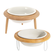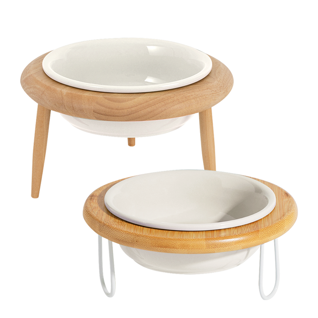 竹圈鐵架/橡木圈架 陶瓷飛碟寵物碗 米白色