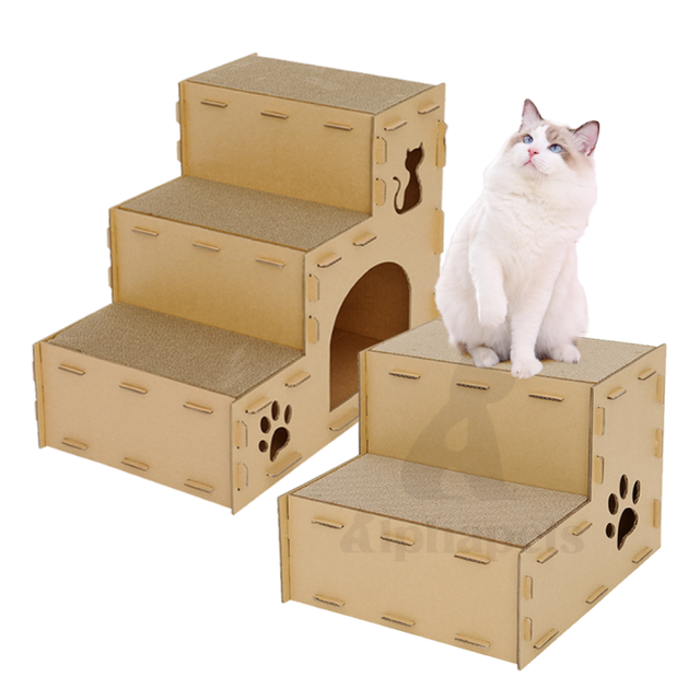 你知道貓咪最愛的兩件事是什麼嗎?爬高 + 抓抓抓~這一個紙板階梯,完全同時滿足它們兩個願望!上層跟側面都用特殊工法做成磨爪區,咚咚咚跳上去抓個過癮真的超開心。而且高度不是很陡,對大型貓或年紀稍長的貓咪來說也很友善~