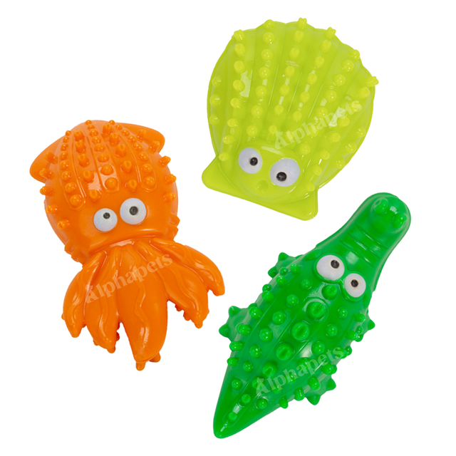 整組造型都超有趣,有魚、章魚、貝殼、鱷魚等等,小朋友看到都會說:「哇這是毛孩的海底總動員嗎?」超Q又討喜,絕對是毛孩玩具箱裡的新寵王❤️