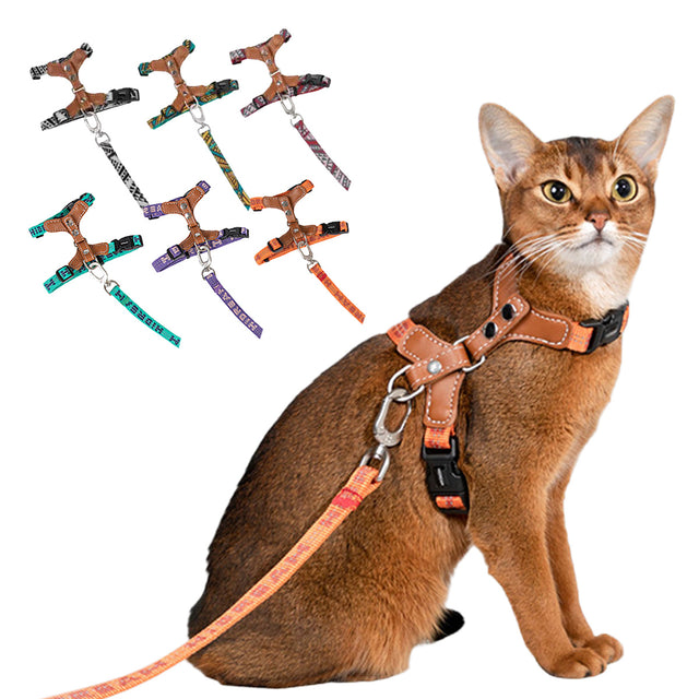 HIDREAM 啵啵系列 反光皮革貓咪胸背帶牽繩組 6色